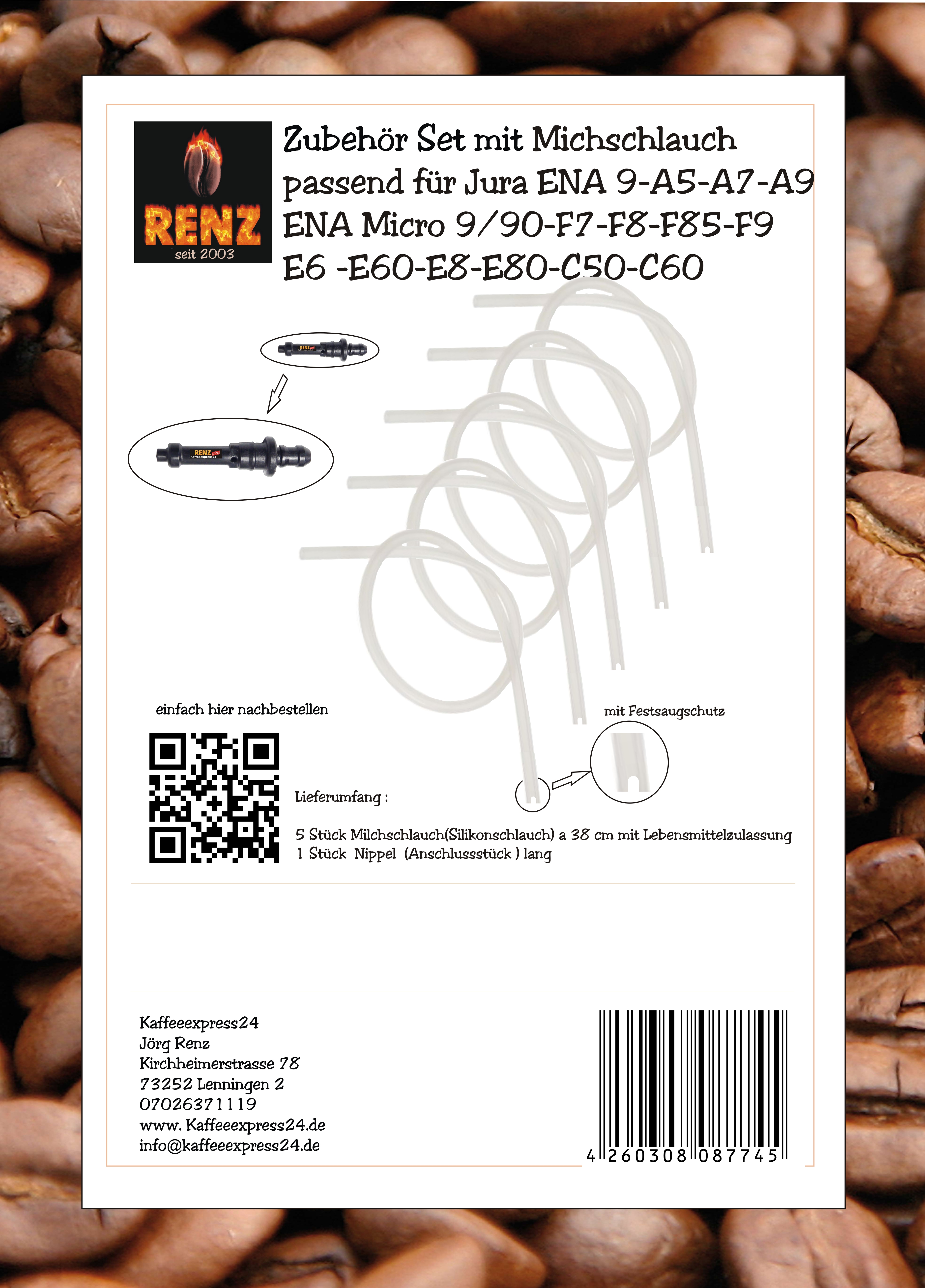 Produktinformationen "Zubehör Set mit Michschlauch passend für Jura ENA 9-A5-A7-A9 ENA Micro 9/90-F7-F8-F85-F9 E6-E60-E8-E"